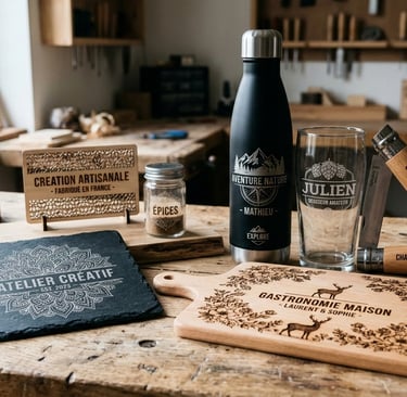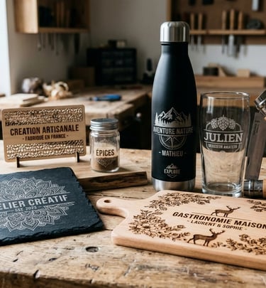 Personnalisez bois, cuir, verre ou carton en gravant et découpant des motifs précis, pour des créations décoratives uniques.